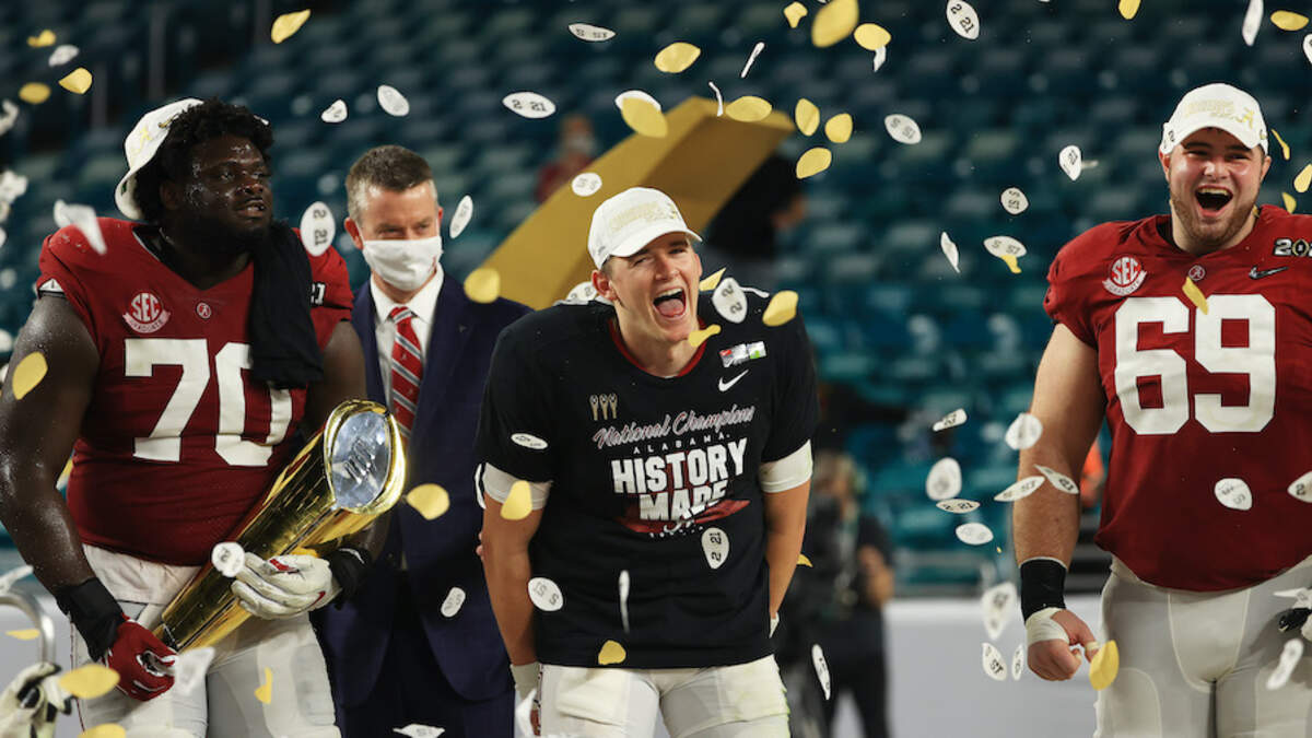 Jones led Alabama to a College Football National Championship and was third in the Heisman voting behind teammate DeVonta Smith and Clemson quarterback Trevor Lawrence during his lone season as Alabama's full-time starting quarterback.